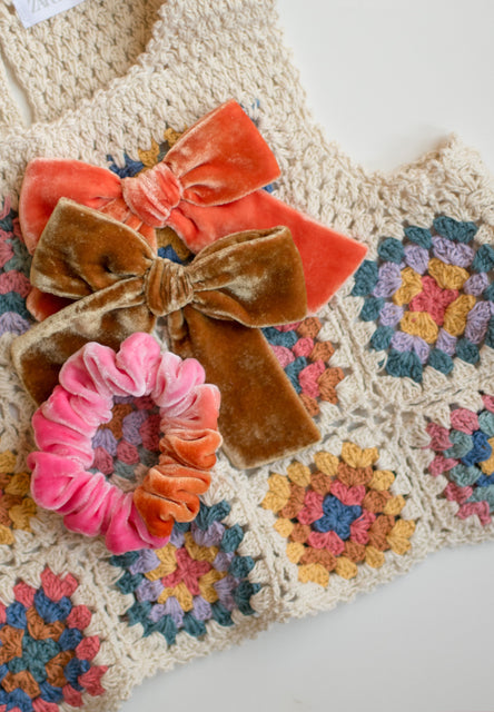 Hand-dyed velvet bows, heirloom-quality headbands, and joyful scrunchies — lovingly crafted in small batches for modern families. All made with love in the Pacific Northwest.